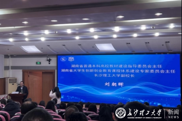 湖南省普通本科高校教材建设指导委员会、湖南省大学生创新创业教育课程体系建设专家委员会主任,雷竞技官网副校长刘朝晖,省教育厅学生处负责人、就业指导中心负责人等领导出席会议并讲话。