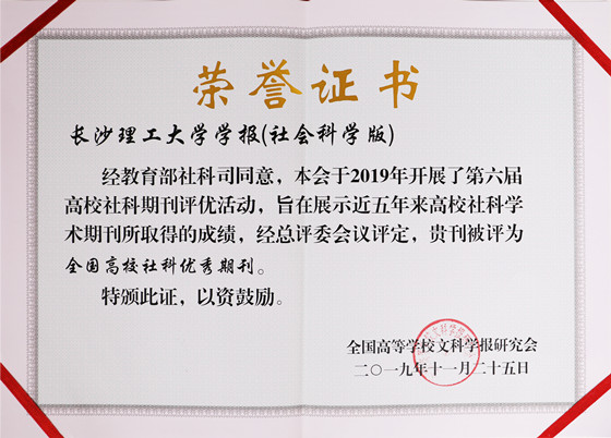 近年来,《长沙理工大学学报(社会科学版)》坚持正确的舆论导向和“为人民服务、为社会主义服务”的政治方向,认真贯彻党的“双百方针”,促进社会科学的繁荣与发展,社会效益和影响力不断提升。目前,学报的影响因子(2018年度CNKI指数)为0.824,在全国436种同类期刊中排名第60位,为Q1区期刊,影响力指数排全国第99位,排位百分比为22.71%;是中国人文社会科学核心期刊(AMI)A刊、RCCSE中国核心学术期刊、人大“复印报刊资料”重要转载来源期刊等重要核心期刊行列;曾先后获“全国高校社科优秀期刊”“全国优秀社科学报”“全国高校百强社科学报”等荣誉,2011年创办的“科技哲学研究”专栏先后被评为“湖南省优秀期刊栏目”“全国高校社科期刊特色栏目”。