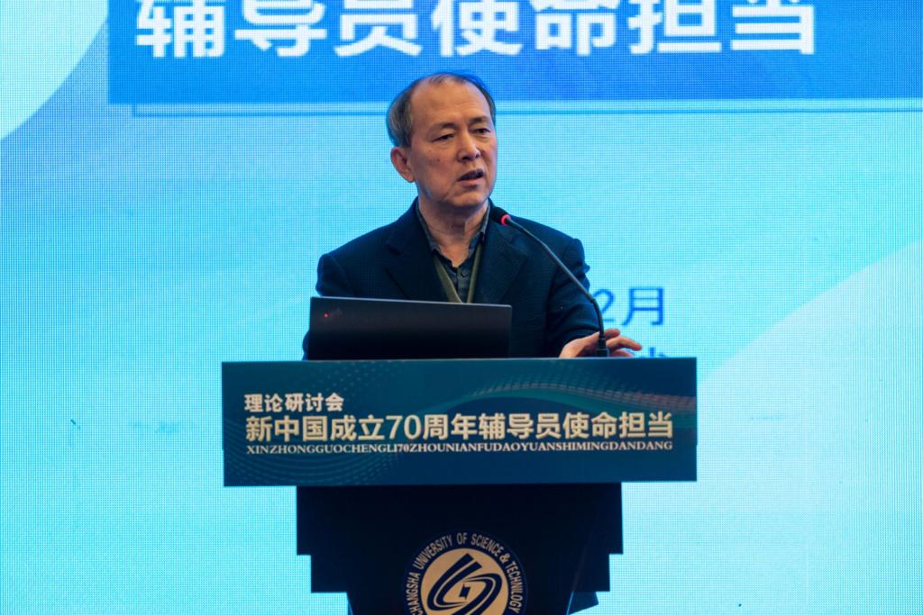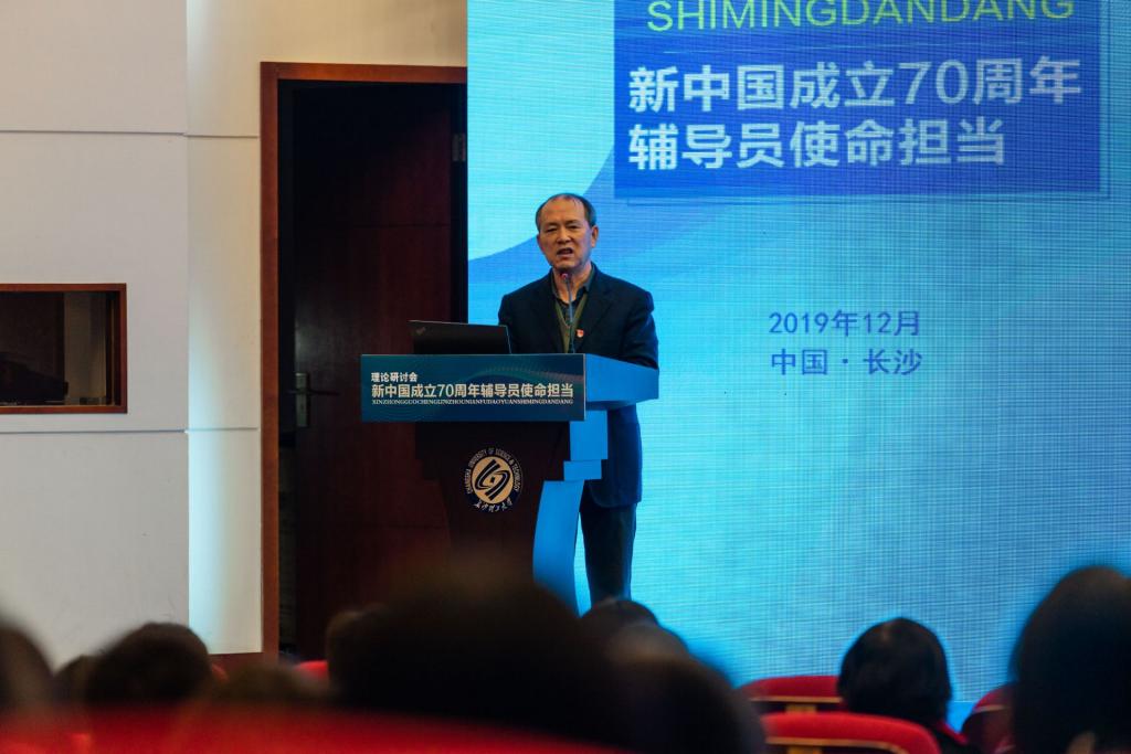 曲建武教授从“我为什么愿意做辅导员”和“践行‘六要’,铸魂育人”两个方面,结合自己多年从事辅导员工作的经历,结合参加新中国成立70周年国庆庆典的现场切身感受,分享了深入学习习近平总书记在新中国成立七十周年重要讲话精神,深刻阐述了大学的内涵,明确了辅导员事业的重要性,指出要不断加强高校政治建设、辅导员队伍建设、学生干部队伍建设,以对党和人民高度负责的态度做好辅导员工作,努力做到学生工作重心下移、根植学生,对得起人民和学生。