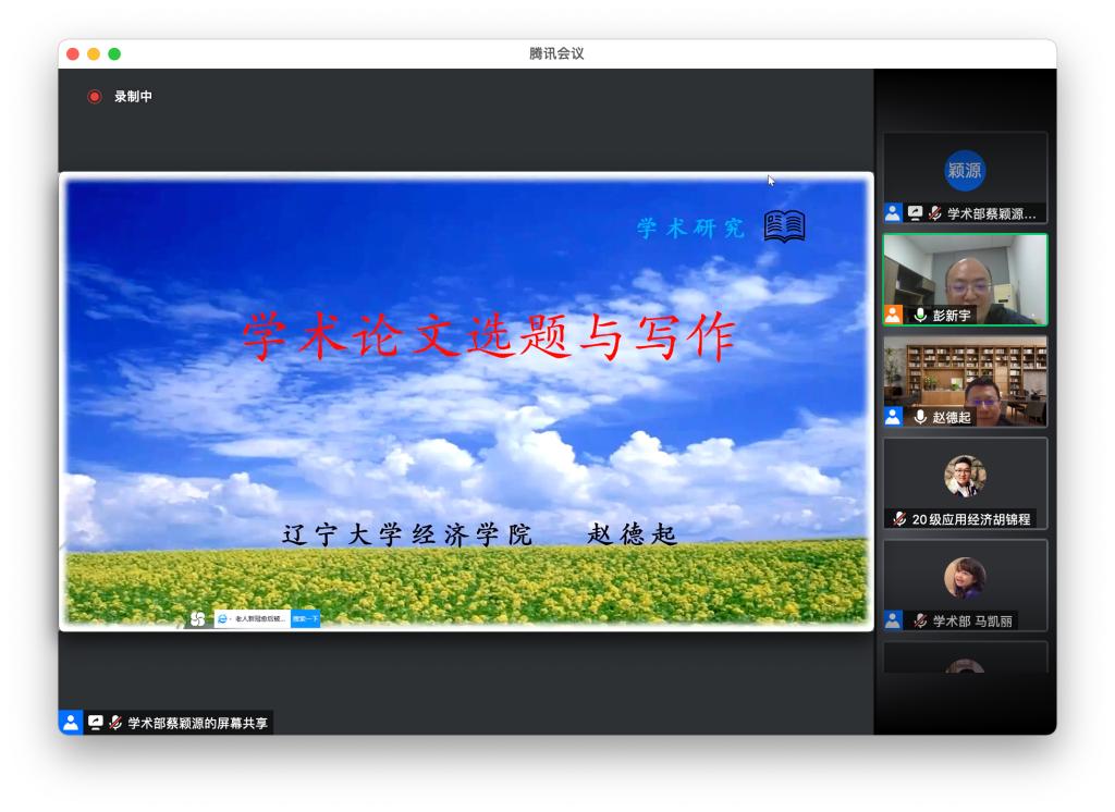 11月17日晚,辽宁大学经济学院副院长赵德起开展了“学术论文选题与写作”线上专题讲座。此次讲座是第十六届研究生博力学术论坛之经济全球化与管理创新专题论坛第三期,讲座由雷竞技官网经管学院院长陈银娥主持,副院长彭新宇、辅导员周路路及学院近300名硕士研究生、本科生参加。