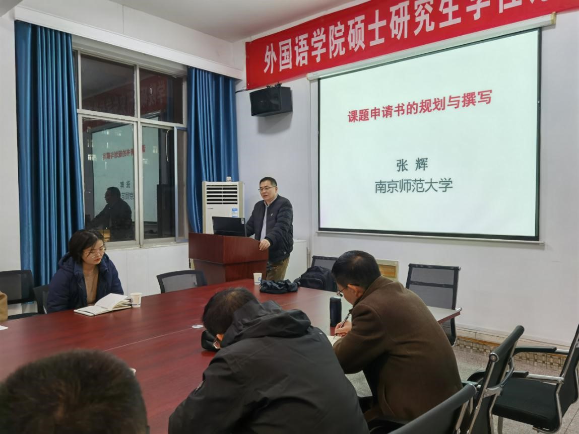 应外国语学院邀请,南京师范大学张辉教授于11月25日晚在金盆岭校区9教406举行了题为“课题申请书的撰写与申报”的学术讲座。讲座由外国语学院院长段胜峰教授主持,外国语学院部分教师和研究生参加了此次讲座。