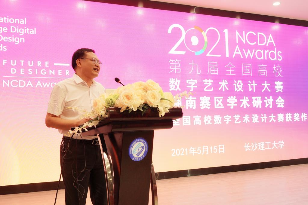 5月15日,2021第九届全国高校数字艺术设计大赛(未来设计师NCDA大赛)湖南赛区学术研讨会暨第八届全国高校数字艺术设计大赛获奖作品展在雷竞技官网召开。会议由全国高校数字艺术设计大赛组委会、长沙理工大学主办,长沙理工大学教务处、设计艺术学院承办。来自全省设计艺术领域18所高校的100余位专家学者参加会议。长沙理工大学副校长刘朝晖、全国高校数字艺术设计大赛组委会秘书长郭清胜为研讨会致辞。会议由设计艺术学院院长王健主持。
