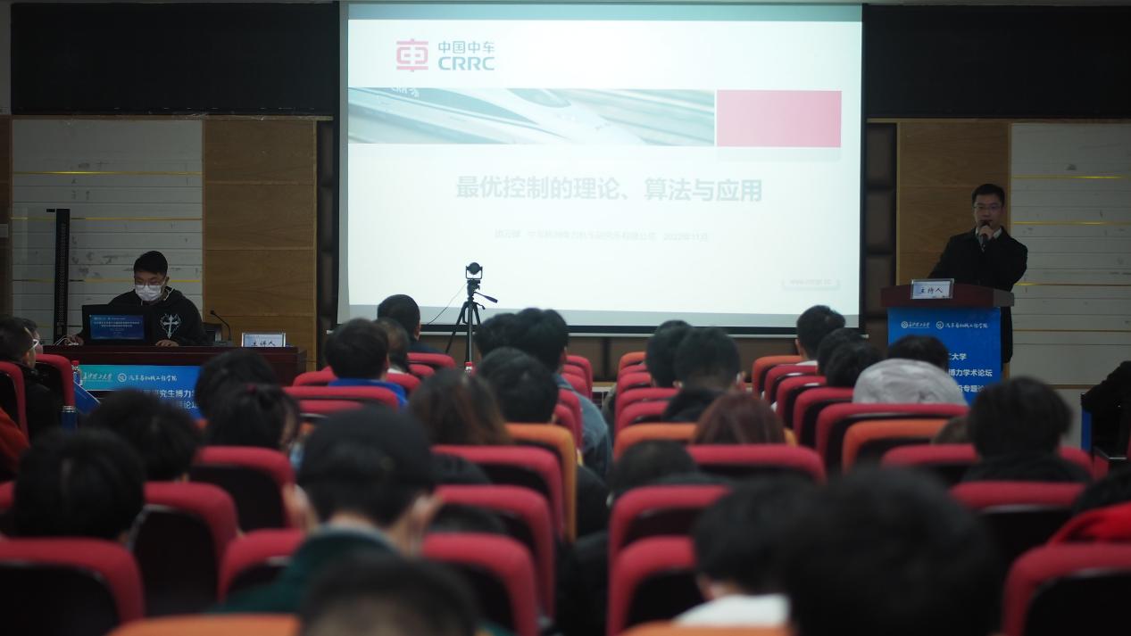 胡云卿以“最优控制理论、方法及在重载列车自动驾驶中的应用”为题,为大家讲解什么是最优化、最优化控制问题、光滑化惩罚函数法以及最优控制的广泛应用。他用两个生活中常见的实例“如何使外卖盒最小问题”和“如何使油耗达到最少”,幽默诙谐的让大家了解到什么是最优化、最优化的基本概念、最优化问题的数学描述与分类、最优化问题的求解思想。随后他介绍了最速下降问题和最优控制问题通用表达式、算法等,并展示了实例建模。
