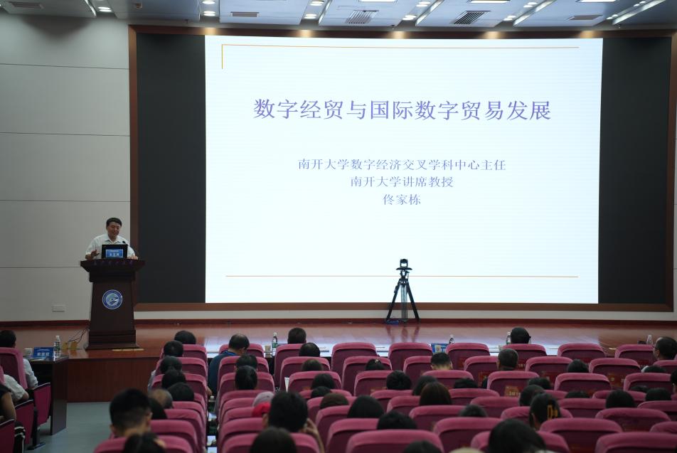大会第二环节是主旨演讲,主题为“新发展格局战略下的贸易模式、理论及挑战”,由长沙理工大学经管学院副院长彭新宇主持。对外经济贸易大学校长赵忠秀教授作了题为《新文科建设背景下的国际经济与贸易专业建设》的演讲。赵教授对新文科背景下国际经济与贸易专业的教育教学改革、以及学科发展的前沿和动态进行了全面的阐述,在新文科背景下人才培养以及国际经济与贸易专业建设方面给予了深刻的启发。南开大学讲席教授佟家栋教授作《数字经济与贸易发展方向的思考》的演讲,他指出数字要素的加入,实现了经济发展方式的革命,数字产品和数字服务的可贸易性,为国际数字贸易创造了广阔的发展空间,将开启新一轮的经济增长。辽宁大学经济学部副主任崔日明教授作《新文科背景下国际经济与贸易专业课程思政改革与实践》的演讲,崔教授紧扣国际经济与贸易专业的特点,从一个基本点、两个必要性、三个育人目标、四个实践路径四个方面介绍如何将课程思政有效融入国际经济与贸易专业课程教育教学。上海对外经贸大学黄建忠教授作《中国外贸运行的新环境、新特征与新对策》的演讲,黄教授结合我国对外贸易面临的国际国内环境变化以及当前对外贸易运行的新特征,提出了“稳中求进”的创新对策。上海财经大学研究生院院长靳玉英教授作《出口管制与企业生产率:基于全球供应链的分析》的演讲,从全球供应链角度实证分析了美国出口管制对企业生产率的影响。