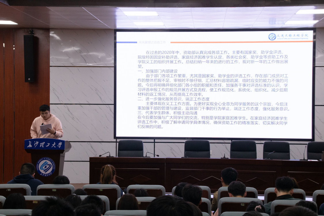首先,各部门成员代表依次作2020年部门工作总结,总结涵盖各部门的职能、日常工作,近期工作安排和工作中存在的问题。该问题包括办公室在报账工作中审核项目不够严格、生活权益部权益有效提案较少、学习部日常生活统计数据出现遗漏等,发言代表们指出问题后提出改进措施。其次,学院分团委、学生会主席团成员对分管部门的未来工作作出展望,强调各部门应加强联系。同时,他们表示,学生干部要提高自身素质、增强工作能力,进一步强化服务意识、责任意识,营造良好的学风建设、科创氛围等。
