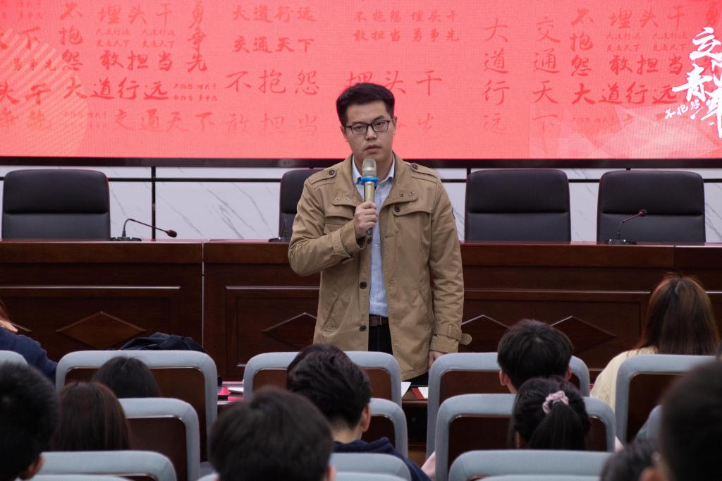 彭笠对学生干部提出了六个方面的要求,第一,做政治上的可靠人;第二,不忘初心、牢记使命;第三,做好表率;第四,敢于担当;第五,主动作为;第六,锤炼作风。他详细阐述道,学生干部要提高自身政治领悟能力,坚决不在社交平台上发布不正当言论,并且要始终保持服务同学、奉献自己的初心。他表示,学生干部要在学习和工作等方面为同学们树立榜样,对工作细致负责并及时汇报工作进度,更要在把握传统的基础上勇于创新。他希望学生干部阅读一些哲学文学类书籍,培养自身文学情操和党性修养。他强调,学生干部应在日后的工作中发挥主观能动性,积极彰显“不抱怨,埋头干,敢担当,勇争先”的交通青年精神。
