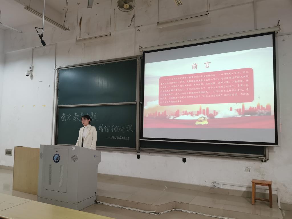 4月24日晚,汽机学院党史教育专题“学史增信”微党课在工一A106举行。学院学工办辅导员路平安、王丽丽和全体学生党员参加微党课学习。