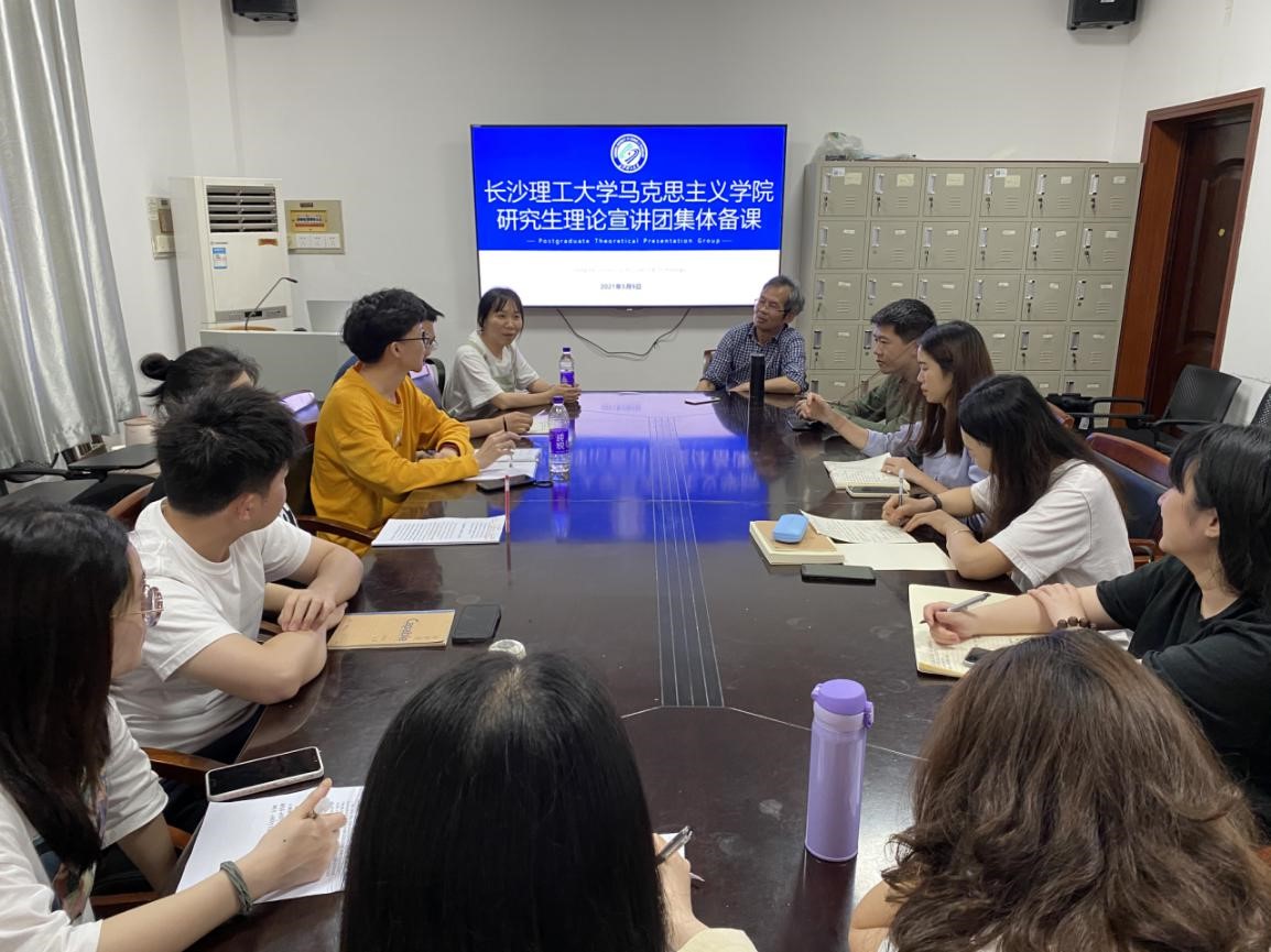为进一步增强学院研究生理论宣讲的针对性、实效性,马克思主义学院于5月9日下午在金盆岭校区4教503教室组织开展研究生理论宣讲团第一次集体备课。此次集体备课学习邀请了学院中国近现代史纲要教研室教师、九三学社中央中国特色社会主义理论宣讲团成员赖某深教授到场指导,备课讨论会议由辅导员曾蓓主持,宣讲团全体成员参加。