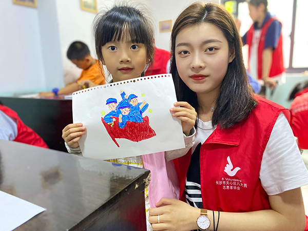 本次活动旨在培养幼儿对中国革命历史的认同感,激发爱国主义精神,树立正确的世界观、人生观、价值观。志愿者通过一张张革命时期的红色照片,带领孩童重温过去的峥嵘岁月,缅怀先烈的英雄事迹。与此同时,稚嫩的小手描绘着中国共产党波澜壮阔的光辉历史,让在场的每一位深受感染和震撼。