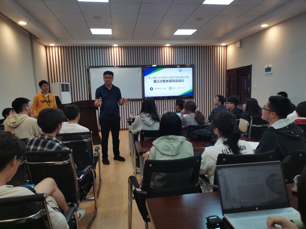 5月17日晚,全国大学生节能减排大赛校内选拔赛第三次集体指导及培训在新能源大楼二栋505召开,本次集体指导由赵斌教授主讲,能动学院专业老师张巍、学工办李文豪以及参选同学参加。