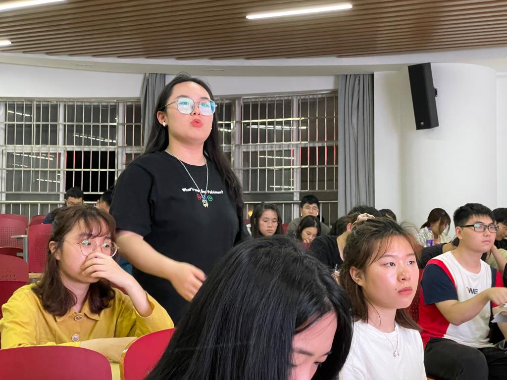 廖志阳以“研学外事礼仪,厚植爱国情怀”为题,首先介绍了基本的外事礼仪相关概念、基本原则和内涵,图文并茂地讲解了迎送、会见、宴会等外事活动中的规范做法,细致分享了服饰穿戴、礼宾座次以及其他外事礼仪方面的注意事项。同时,结合自己多年的理论和实践经验,为学生们为带来生动的故事分享,特别提到他为“杂交水稻之父”袁隆平院士和国外专家交流过程中开展翻译工作的趣事,鼓励学生们在学习专业知识的同时不但要培养语言表达能力,更要有意识地提升通识能力、关注国家大事和国际形势。廖志阳谈到,外事无小事,在外事活动中每个细节都要注意维护祖国的利益,希望同学们能够坚定“四个自信”、树牢“四个意识”、做到“两个维护”,不断拓展国际视野,厚植爱国情怀。最后,廖志阳解答了在场学生关于外事礼仪和语言学习方面的问题。