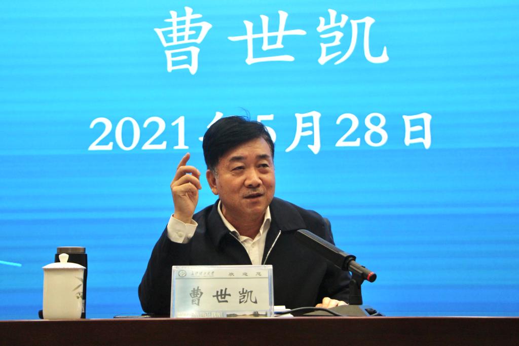 报告会上,曹世凯还以“我始终和学生一起成长”、“思想政治工作伴随终身”为线索,分享了他从事学生工作、纪检监察工作的感悟。他表示,学生工作者要有大胸怀、大格局、大境界,要把学生放在最高位置,积极培养社会主义建设者和接班人,培养人类灵魂的工程师和人类文明的传播者。他结合当前正在开展的党史学习教育,强调在党史学习教育中要找准自身立场、站稳人民立场、坚持问题导向和党性原则;要找准方法,掌握好理论联系实际、密切联系群众、批评与自我批评等方法;要抓实作风建设,发扬艰苦奋斗、务实创新、无私奉献的精神,以实绩实效检验党史学习教育成效。