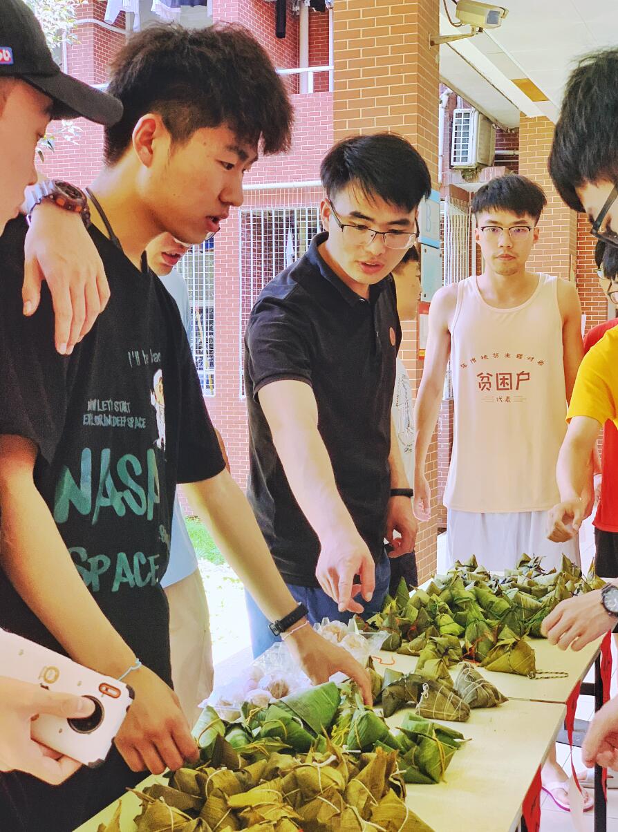 早早得到消息的同学们奔走相告,活动还未开始便排起了长长的队伍。一边喊着要“平安粽”,另一边要“无忧粽”……答对端午习俗问题的同学还可以多领一个奖励粽,同学们大脑飞速运转,争先恐后地回答“赛龙舟、饮雄黄酒、系五彩线、挂艾草”……一时间活动现场热闹非凡。品美味、忆习俗、尊传统,所有童年美好的回忆重现脑海,这是每个游子对家的记忆与思念。
