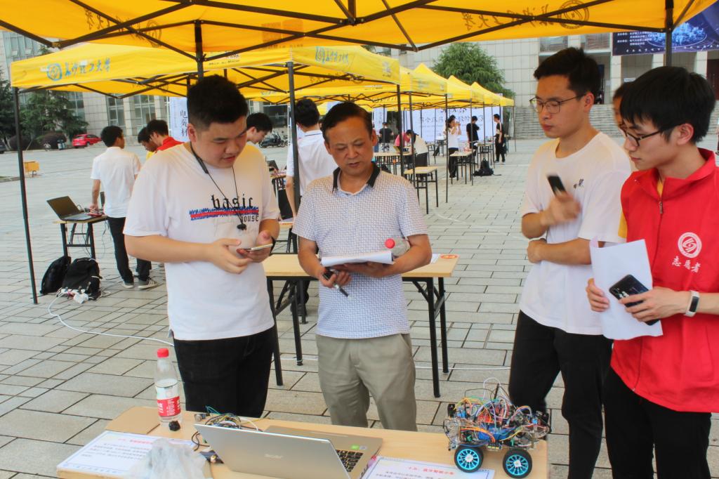 上午10时,评委老师开始对每个项目逐一检查并评分。经过为期两个月的遴选,共有46个参赛项目成功入围本次终评。每组参赛队伍就作品设计理念、运行制作原理、成品展示等作了详细的讲解。各位评委老师认真听取了各参赛小组的汇报,并在成品展示环节针对每小组的作品分别给予了中肯的建议和意见。