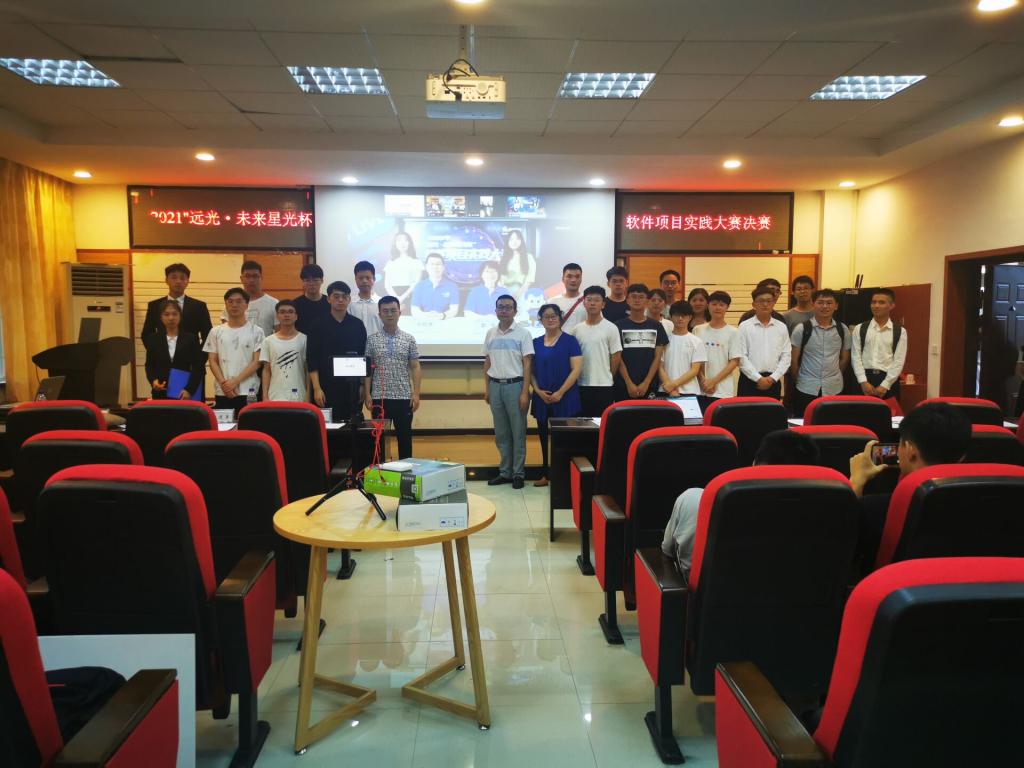 6月19日下午,计通学院2021年“远光·未来星光杯”软件项目实践大赛决赛在云塘校区理科楼B311举行。本次比赛采用线上、线下相结合的方式开展,计通学院党委副书记涂道勇、软件工程系肖晓丽教授、网络工程系邓锬博士出席决赛。远光软件股份有限公司副总裁袁绣华、ECP平台研发部副总经理郭华、ECP平台研发部设计经理刘培德通过网络直播出席决赛。