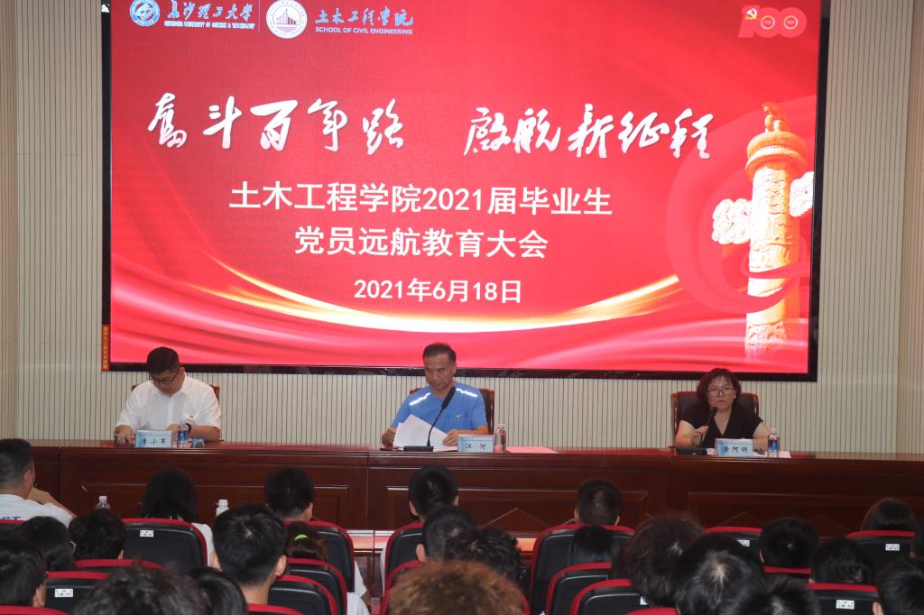 6月18日,土木工程学院“奋斗百年路,启航新征程”2021届毕业生党员远航教育大会在工二B302举行。学院党委书记江河,院学生党总支副书记李小军、支部书记龙承运、董治佑及全体毕业生党员参加会议。院党委副书记黄阿明主持大会。