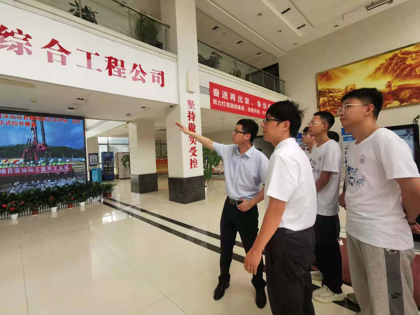在公司宣传部干事马晓兰和办公室档案专员姚志萍的带领下,大家参观了中铁十一局荣史馆。在这里,大家对四公司的悠久历史、辉煌成就有了进一步了解,对四公司所主施工的石太客专孤山竖向转体桥、“亚洲最大的地下综合体”之称的武汉光谷地下综合体等一大批技术含量高、施工难度大、影响力强的国内外重点工程,同学们纷纷点赞,并表示一定要珍惜这十天,向四公司多学习,在今后的职业生涯中牢记此行所学,为祖国基础建设贡献青春力量。