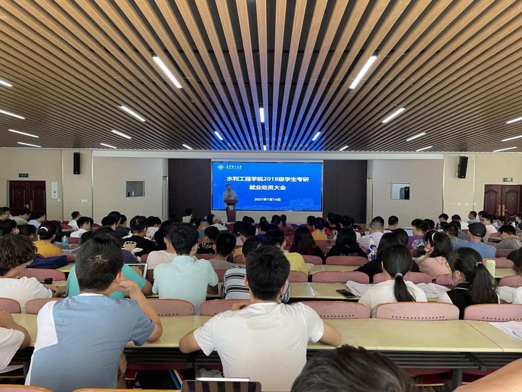 7月14日上午,水利工程学院在工三A201、A307分场次召开2018级学生考研就业动员大会,院长陈杰、党委副书记银波、就业辅导员肖苹宁和2018级辅导员黄远发出席。