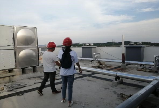 7月16日,电气学院赴韶山国网实践队营销组成员,在喻胜宇主任的带领下,前往光伏发电板项目现场及韶山学校项目现场参观见习。韶山学校全电系统的食堂后厨相较于传统厨房而言,更加清洁环保。
