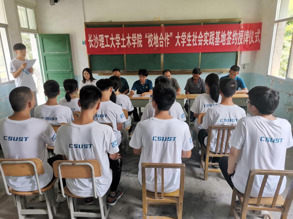 土木学院团委书记董治佑与符德全分别代表各自单位签署校地合作大学生社会实践基地协议。村支书符志华、村主任符安健围绕村里孩子基本情况、住宿条件作表态发言。