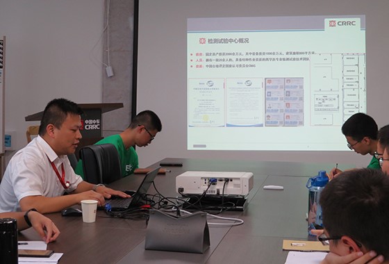 7月22日上午,电气学院赴中车浙江尚驰有限公司株洲公司暑期实践队全体实践队员在湖南省新能源汽车电机工程技术研究中心302会议室参加该公司新能源驱动试验中心主任陈康昊主讲的永磁同步电机检测试验基础知识培训。