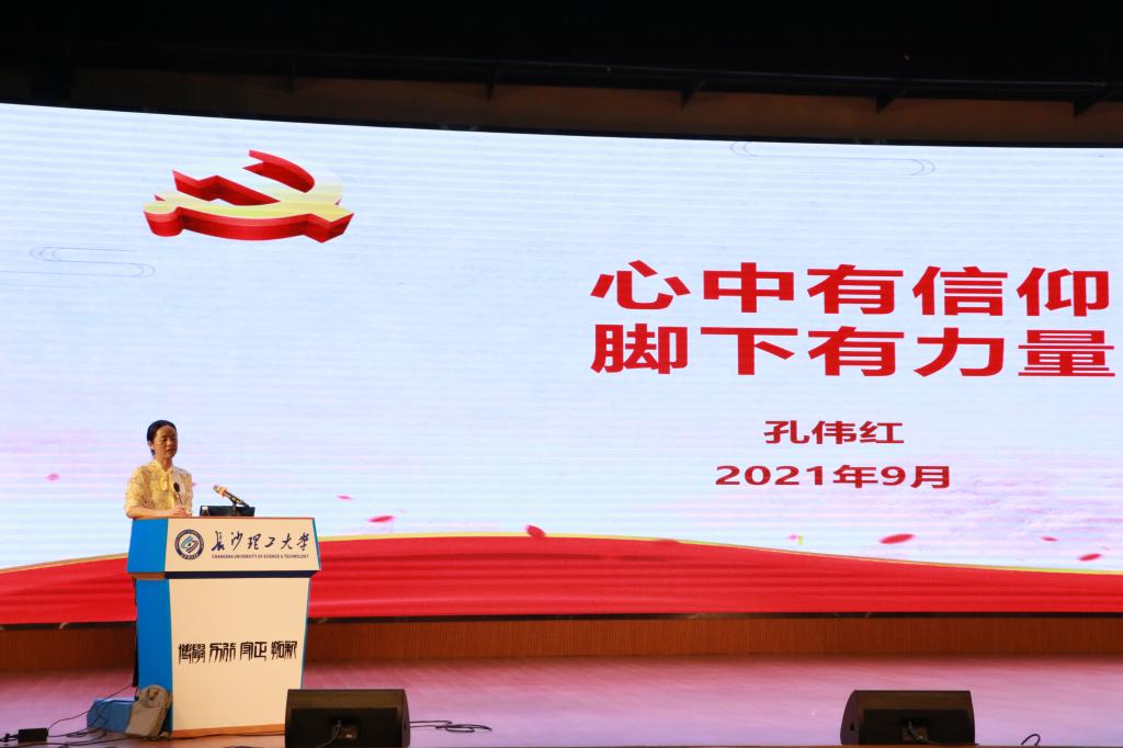 9月9日上午,交通学院党委书记孔伟红在金盆岭校区五教大礼堂为学院2021级研究生新生开讲党课。