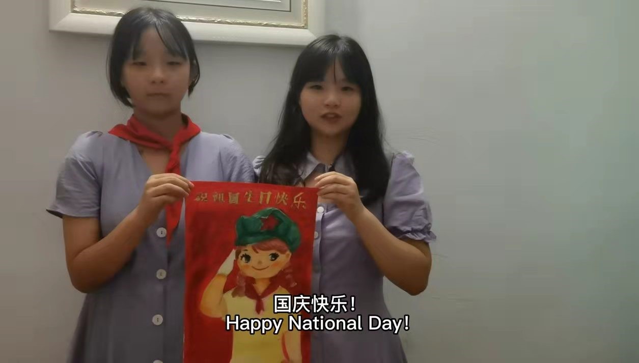 其中,“致敬伟大新中国”实践组的小青马们用自己深厚的专业知识技能向中小学生和外国友人讲述国旗的由来及其象征意义,并向他们传授国旗与国庆相关的英语表达,向祖国母亲表达了真挚的祝福。“国旗下的接班人”实践组的小青马们通过指导中小学生或与外国友人一起完成一幅有关国旗、国庆的彩绘作品来献礼祖国。“我爱你,五星红旗”实践组的小青马们则通过网上收集有关国旗、国庆介绍的素材,并配音剪辑中英双语短视频的方式来表达对祖国母亲浓浓的爱意。