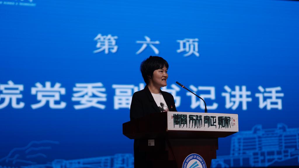 银波肯定了2019级学生在上两学年中取得的突出成绩,对2019级学生的个人成长和精神面貌表示充分赞扬。她希望同学们做一个会选择的人,能够选择好目标,度量好与它的距离,一路前行,奋勇前进,不负青春,不负韶华,发出“请党放心,强国有我”的最强音。