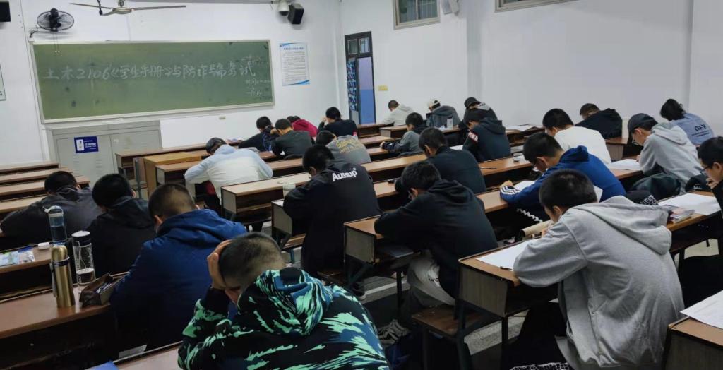 土木学院于10月14日晚在各班自习室举行学生手册及防诈骗内容考试。本次考试由年级辅导员刘文成、邓文杰以及各班班长监考,学院2021级全体新生参加。