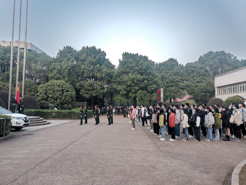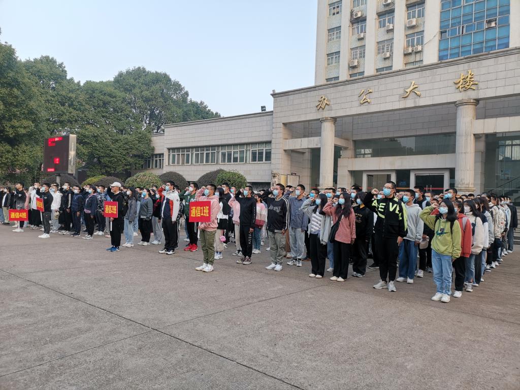 10月25日,计通学院在金盆岭校区办公大楼前坪举行升旗仪式。学院学工老师和21级新生参加。