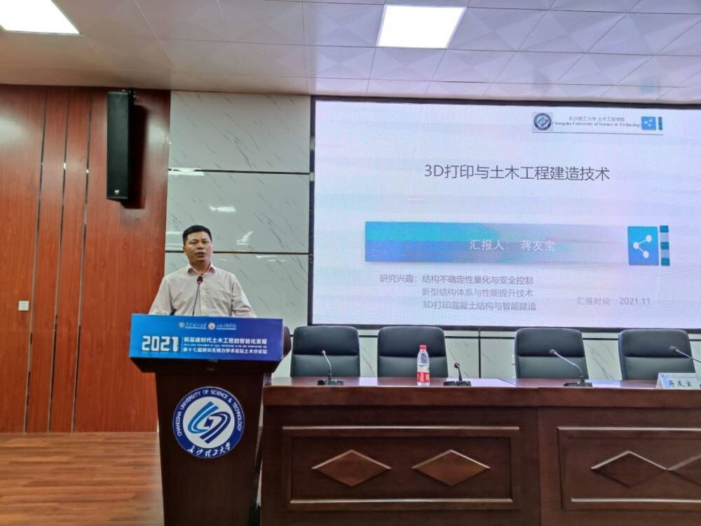 11月5日,土木工程学院第十七届研究生博力学术分论坛第二场专题报告会在金盆岭校区举行。学院副院长蒋友宝教授应邀作了题为“3D打印与土木工程建造技术”的学术报告。研究生辅导员李小军老师,200余名研究生以及智能建造本科生代表参加此次活动。