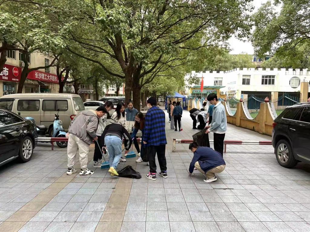 实践活动的各组同学在组长的带领下拿起了扫把、簸箕、铁钳、垃圾袋和一次性手套等清扫工具,分别打扫了校门东门至校训石(包含体育馆门口的小空地)、校训石至办公大楼(包含9教、10教两条小路及办公大楼门前空地)、办公大楼至幼儿园(指校史馆与办公楼之间的小路,一直到东苑教职工食堂与幼儿园门前空地)的落叶、烟蒂等零碎垃圾,并劝阻违规停车现象。