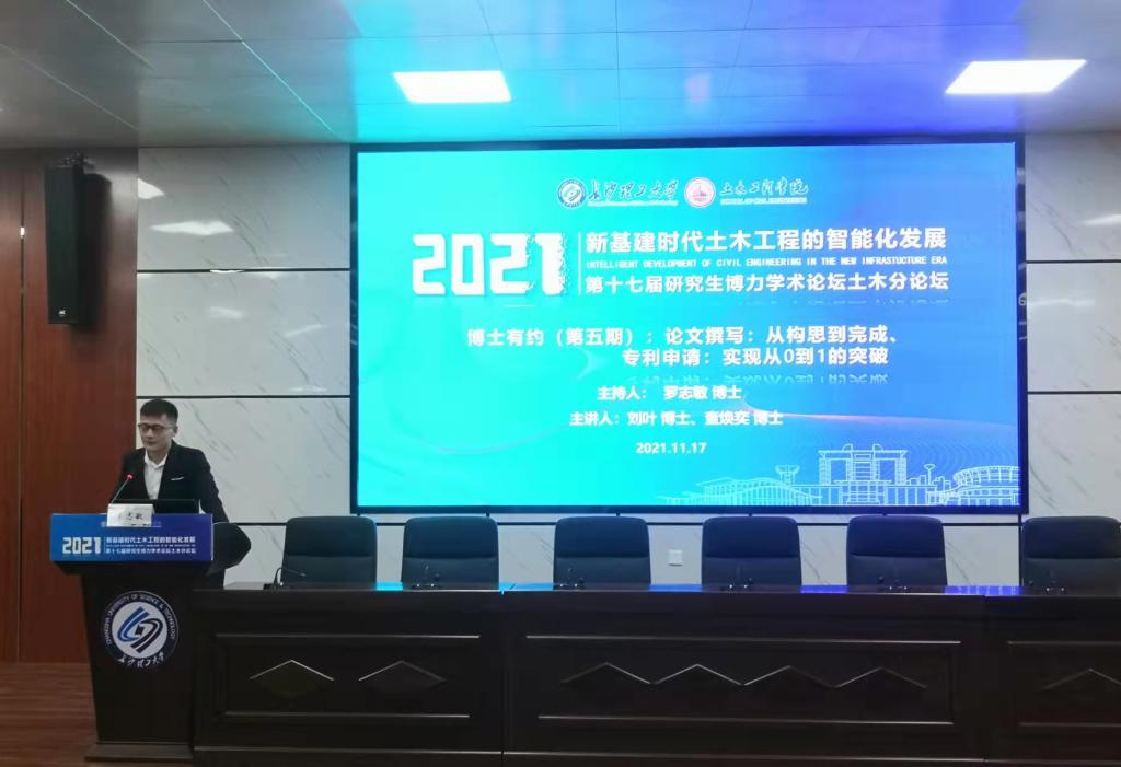 11月17日,土木学院博力学术论坛系列活动之“博士有约”(第五期)学术沙龙在金盆岭校区举行。学院博士研究生刘叶、查焕奕应邀主讲,研究生辅导员李小军及200余名硕士研究生参加活动。活动由学院博士生党支部副书记罗志敏主持。