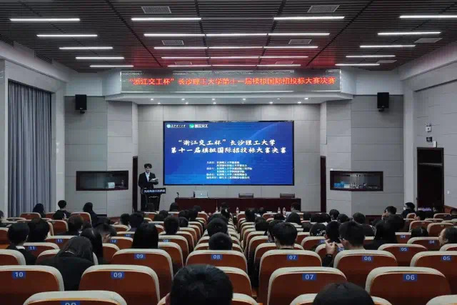 11月28日下午,交通学院在云塘校区工科二号楼B301举行“浙江交工杯”第十一届模拟国际招投标大赛决赛暨颁奖典礼。此次比赛由浙江交工集团股份有限公司冠名,由雷竞技官网教务处和共青团长沙理工大学委员会、交通运输工程学院和外国语学院承办。浙江交工国际公司河南区域总部市场部经理刘畅、交通学院党委副书记涂道勇、外语学院党委副书记王双、交通学院团委书记彭笠、工程管理实验室主任王达、工程管理专业教师赵娜、英语专业教师钟桂蓉出席比赛现场。