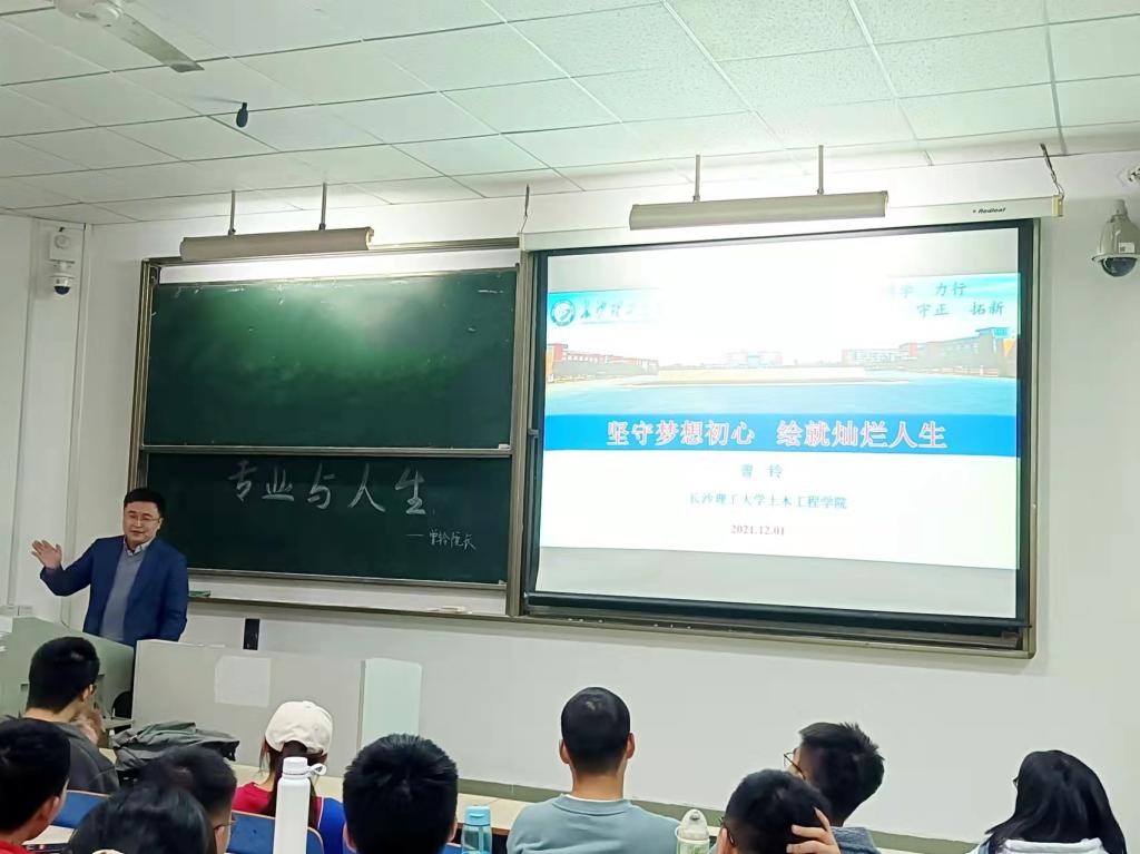 12月1日,土木工程学院在金盆岭校区6教207开展了《专业与人生》通识教育讲座。主讲人为学院副院长曾铃,学院200余人参加讲座。