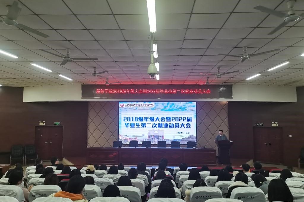 12月2日下午,经管学院在云塘校区大会堂顺利召开了2018级年级大会暨2022届毕业生第二次就业动员大会。学院党委副书记唐青,2018级辅导员何涛、叶鑫参加会议。会议由何涛主持。