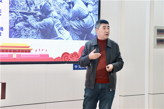 唐雪松教授以“伟大的抗美援朝史”为主题,从抗美援朝历史背景、战争进程与深远影响三个方面进行阐述。以叙事形式介绍了抗美援朝整个时间线以及当时的国际国内局势,他谈到“党领导人民在过去的100年里写下了光辉篇章。我们坚信我们伟大的党也一定能够带领全国人民,在新的世纪继续谱写出更加壮丽的篇章。”