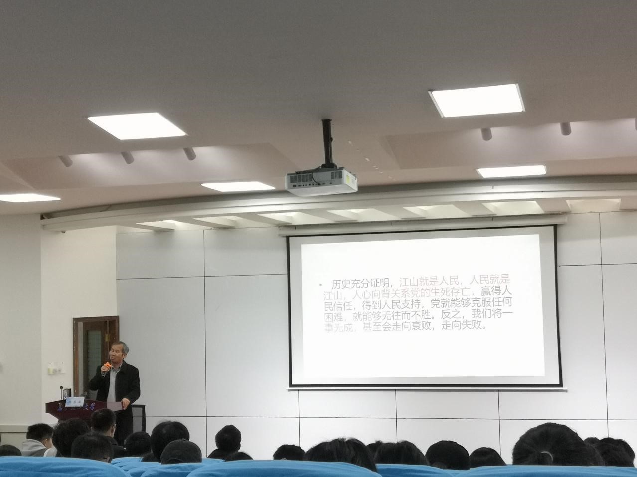 赖某深首先为大家阐述了建党百年庆典的特点,其次深入剖析了习近平总书记在建党百年庆典上的重要讲话中关于脱贫、人民的重要论述以及一些新提法、新论断,接着带领大家从大历史角度看中国共产党的丰功伟绩。赖某深还分享了自己的相关学术研究成果,引导同学们从珍贵史料、重要讲话中全面深入学习党的历史和理论,知史为鉴,开创未来。