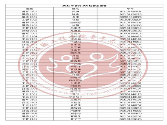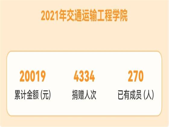 12月7日,交通学院团委青志协举办的善行“100”活动圆满落幕。据统计,2021年交通运输工程学院共有270名志愿者参加此次活动,总捐赠人次达4334次,累计捐款金额达20019元。