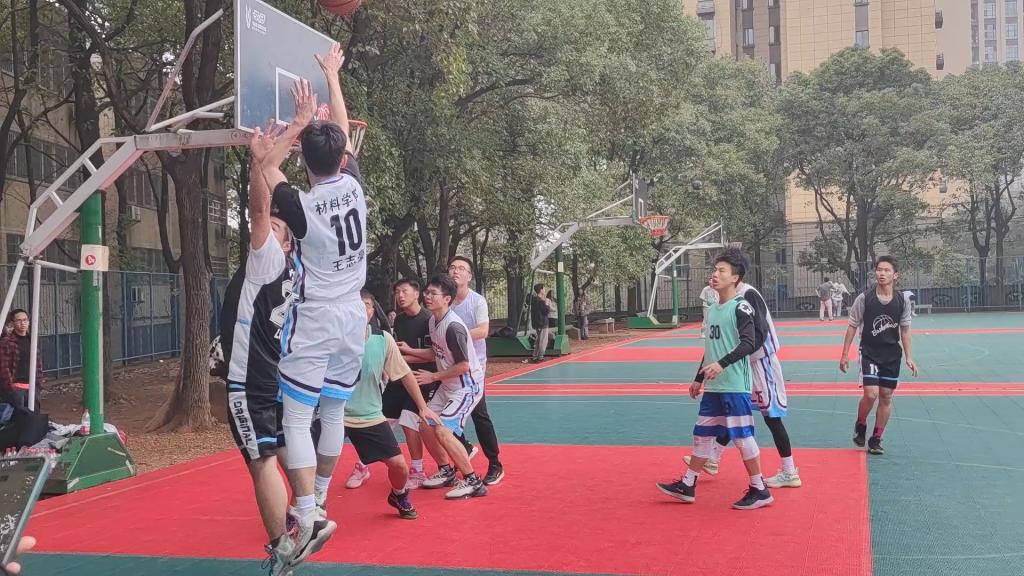12月14日,材料学院在金盆岭校区东苑篮球场举行研本篮球友谊赛以及“迎新杯”闭幕式。21级辅导员王志亮参与、体育部成员陈宇杰主持。