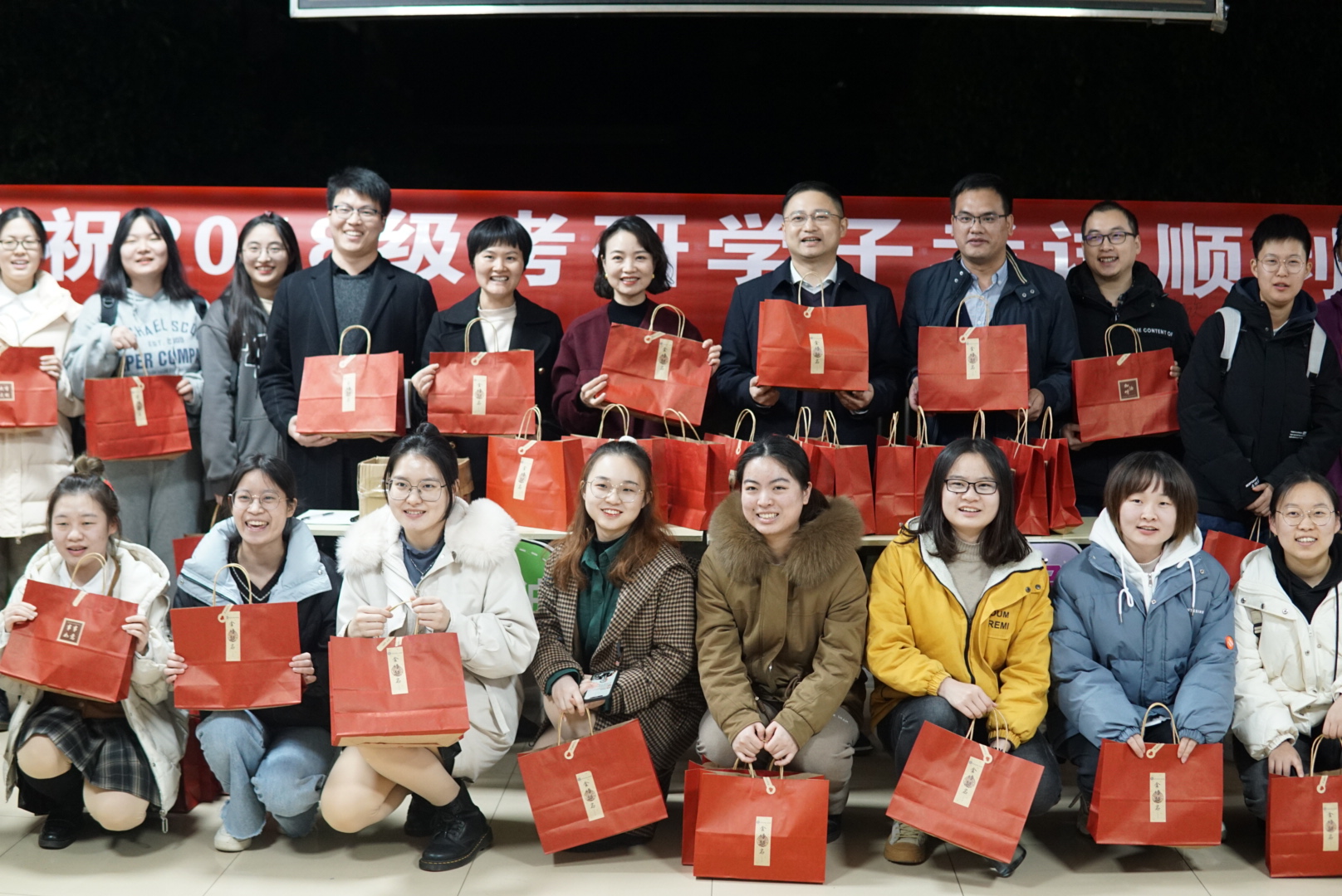 12月21日,正值冬至节气,水利与学院开展为2022届考研学子送祝福活动,学院党委书记喻玲娜、院长陈杰、副书记银波、副院长邓斌、党委委员唐栋、专业老师、班主任、全体辅导员以及工作人员将300余份饱含学院祝福的考研加油盲盒大礼包和热气腾腾的水饺送到考研学子的手中,深深祝愿他们成为考研上岸的佼佼者。