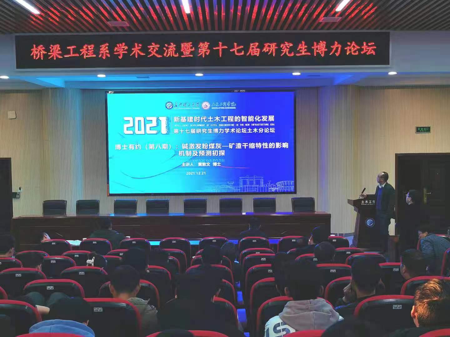 12月21日,土木工程学院博力学术论坛系列活动之“博士有约”(第八期)学术沙龙在云塘校区举行。黄墩文博士应邀主讲,桥梁工程系部分教师及170余名硕士研究生参加活动。
