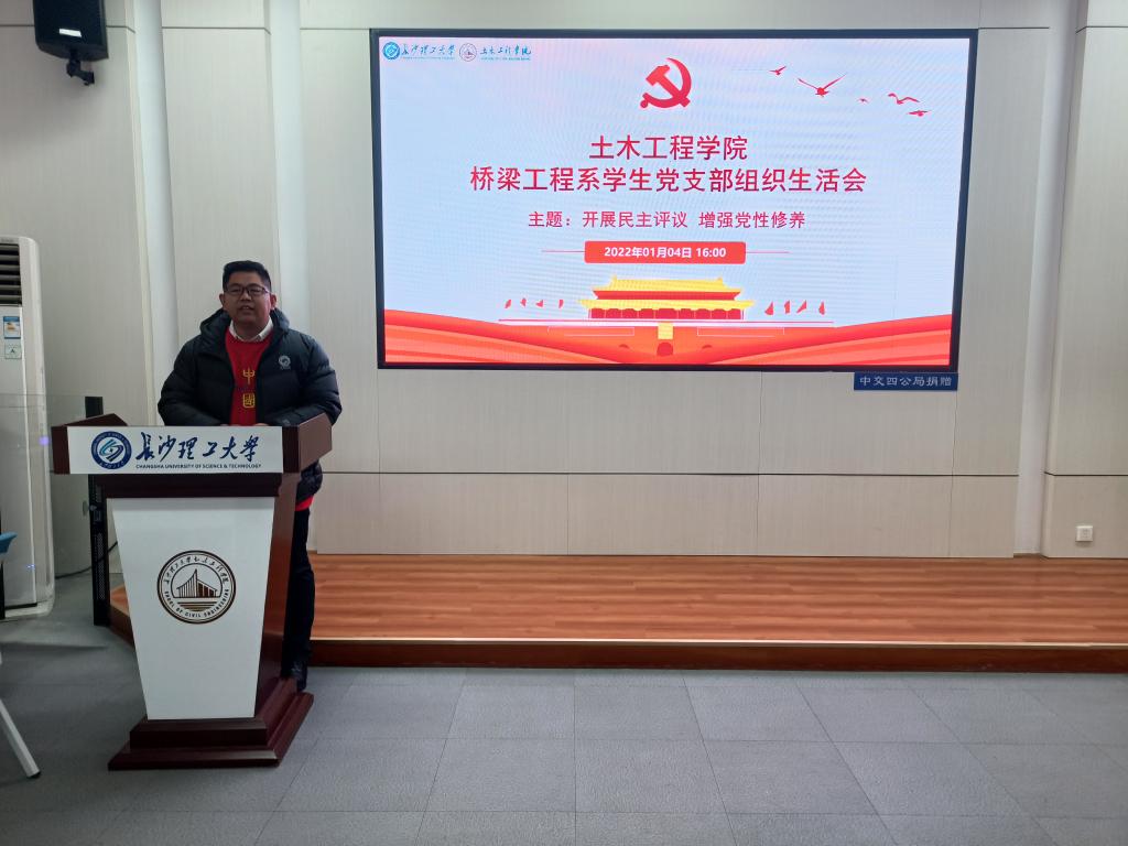 1月4日下午,土木学院桥梁工程系学生党支部在学生发展中心开展2021年度民主生活会。支部书记李小军老师及全体学生党员参加。