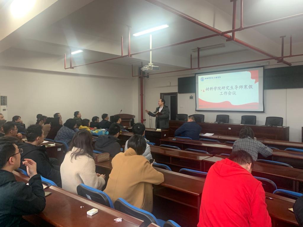 1月18日,材料学院在新能源大楼1栋303会议室召开研究生导师专题会议。材料学院党总支副书记陈华、副院长杨现锋出席本次会议,材料学院全体研究生导师、全体辅导员参加。