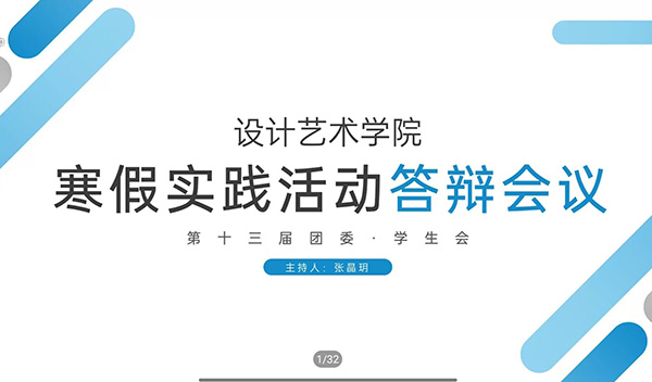 本答辩会以“红色薪火,代代相传”为主题展开,由各小组代表分享实践总结。主持人以PPT为媒介,详细的总结了过去一个月以来读书打卡活动、社会实践活动、线上观影以及重走长征路五项工作的完成情况,分享了组内相互督促、相互鼓励及有序分工等假期奋斗瞬间,分享假期读书感悟。在此次寒假实践工作中,艺术学子养成了良好的习惯,进一步提高了对学生会工作的积极性。