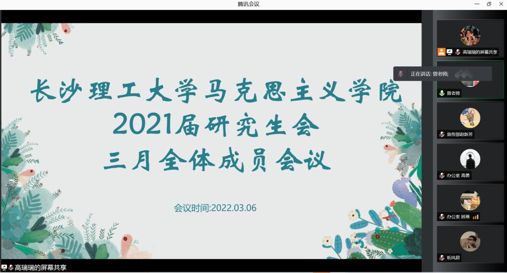 3月6日晚,马克思主义学院召开研究生会三月全体成员线上会议。辅导员曾蓓及院研会全体成员参加,会议由办公室候颖主持。
