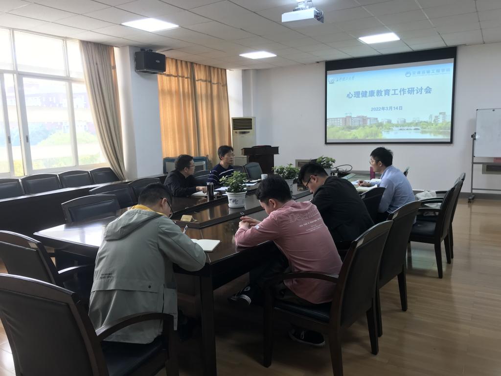 3月14日,交通学院在云塘校区工科二号楼B413开展心理健康教育工作研讨会,院党委书记刘朝辉、党委副书记涂道勇、学工办全体辅导员参加。