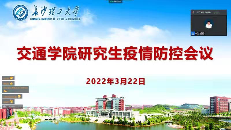 3月22日下午三点,交通学院线上召开了全体研究生疫情防控工作会议,院党委副书记涂道勇、研究生辅导员彭怡峰及863名研究生参加会议。