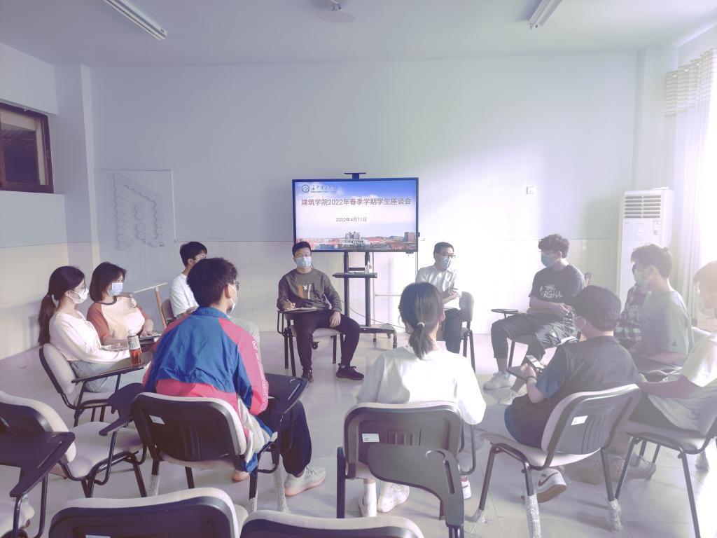 近期,建筑学院分年级分批次召开了2022年春季学期学生代表座谈会。院党委副书记李家春、辅导员郭恒以及各年级学生代表共同参会。