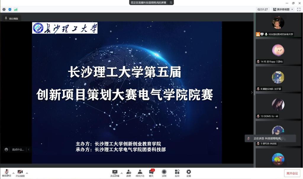 4月12日下午,第五届创新项目策划大赛电气学院院赛在腾讯会议进行线上答辩。创新创业教育办公室主任常晗、电气学院电力系周腊吾、喻锟,自动化系贺勇、智电系杨鑫、贺科学六位老师出席评审,电气学院团委书记田孟萍、各项目团队和观众近100名学生参加。